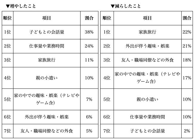 親の個人的な支出や外部との交流は大きく増えていませんが、一部の家庭では気分転換を兼ねて増やしているケースもあります。