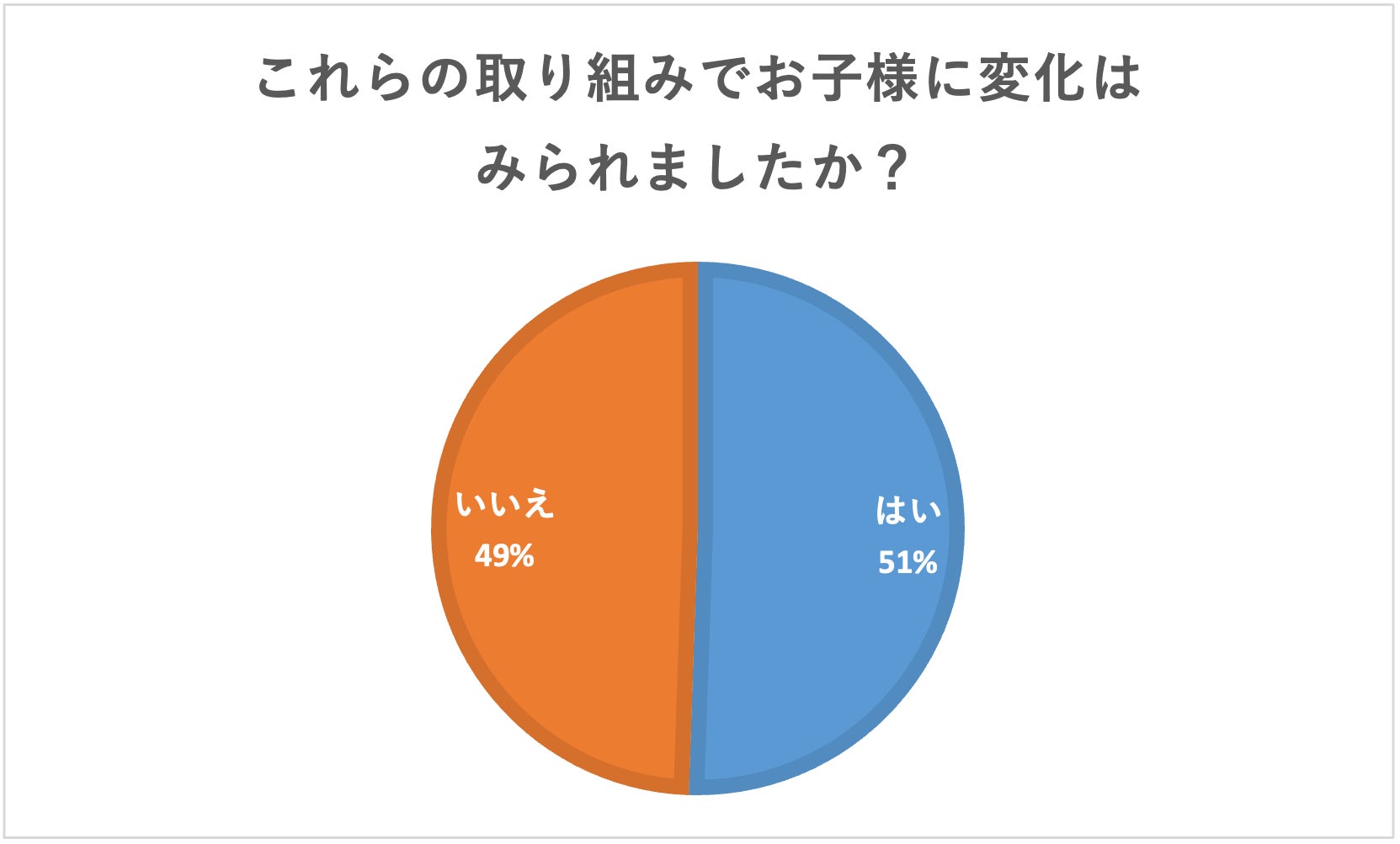 保護者が意識的に取り組みをしたことで、約半数のお子様に影響があるとわかりました。