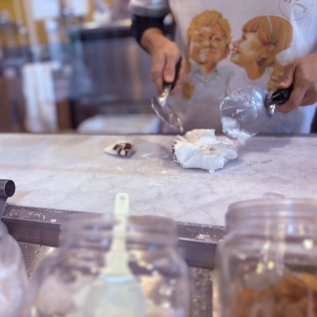 今回プレンティーズが初めてアイスクリームづくり体験をラスカホールで出張開催します。参加者はお好きなトッピングを選びご自身で「まぜまぜ」し、オリジナルアイスを作ることができます。また人気ワッフルにもトッピングができる特別体験です。店員さん気分を味わいながら、自分だけのアイスとワッフルをその場でお楽しみいただけます。