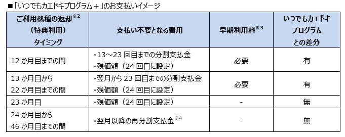ご利用機種のご返却(※2)および早期利用料(※3)をお支払いいただくことで、翌月から23回目までの分割支払金および24回目に設定された残価額のお支払いが不要となります。