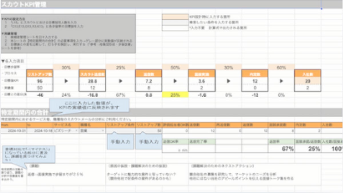 「スカウト実績&KPI管理」シート付きガイドを無料公開!〜スカウト送信から、目標・実績まで一つのシートで一元管理できる!〜