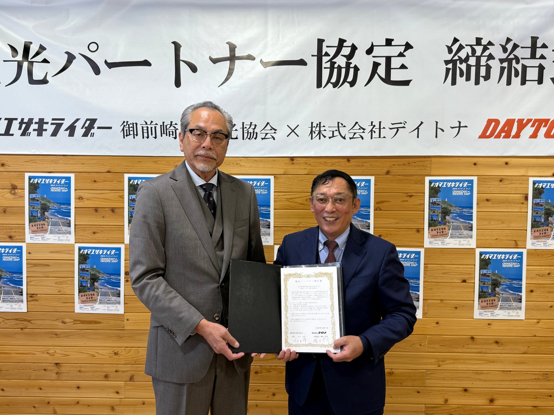 株式会社デイトナ(静岡県周智郡森町一宮4805 代表取締役 織田哲司、以下デイトナ)と、御前崎市観光協会(静岡県御前崎市港6099-1 会長 川口 正洋、以下 御前崎市観光協会)は、12月11日に「観光パートナー協定」を締結しました。