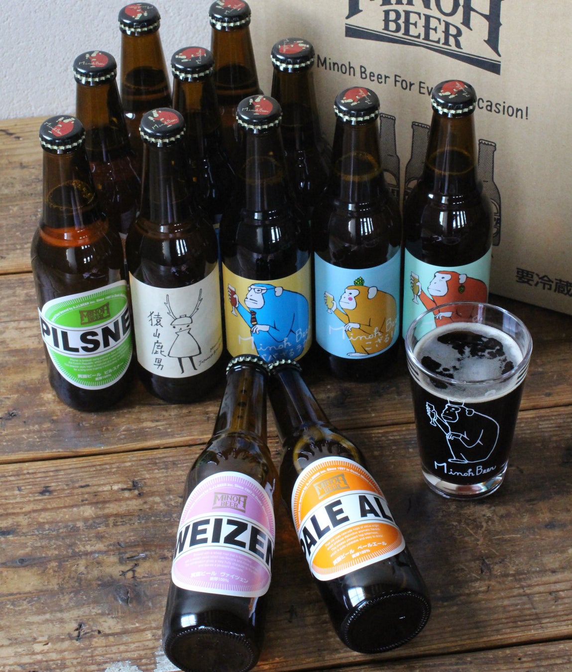 父の日限定「パパざるラガー」や、秋鹿酒造×箕面ビールのコラボビール「猿山鹿男」など、多彩な味を楽しめるバラエティセットです。