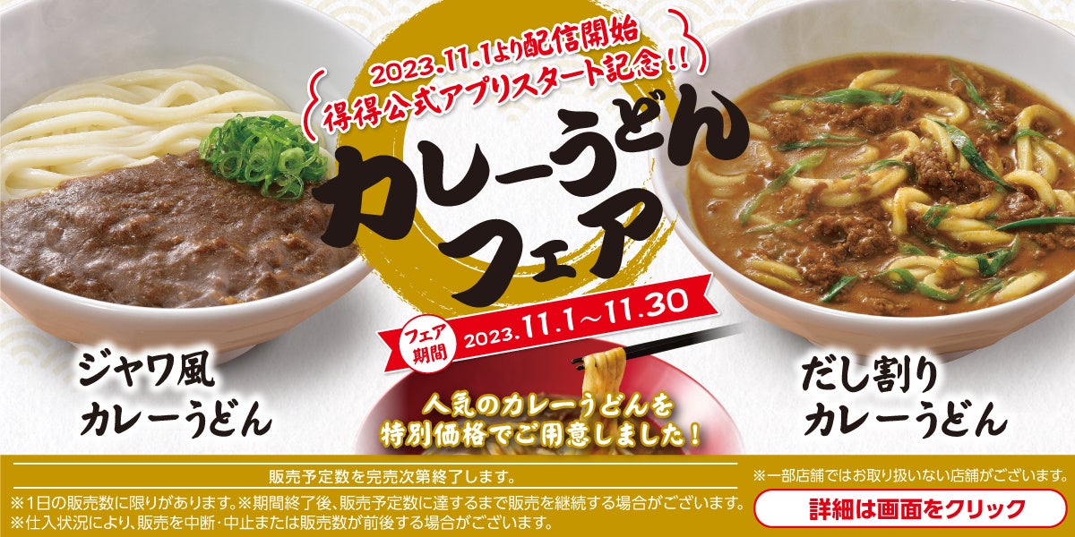 得得公式アプリ開始記念 「カレーうどんフェア」を開催