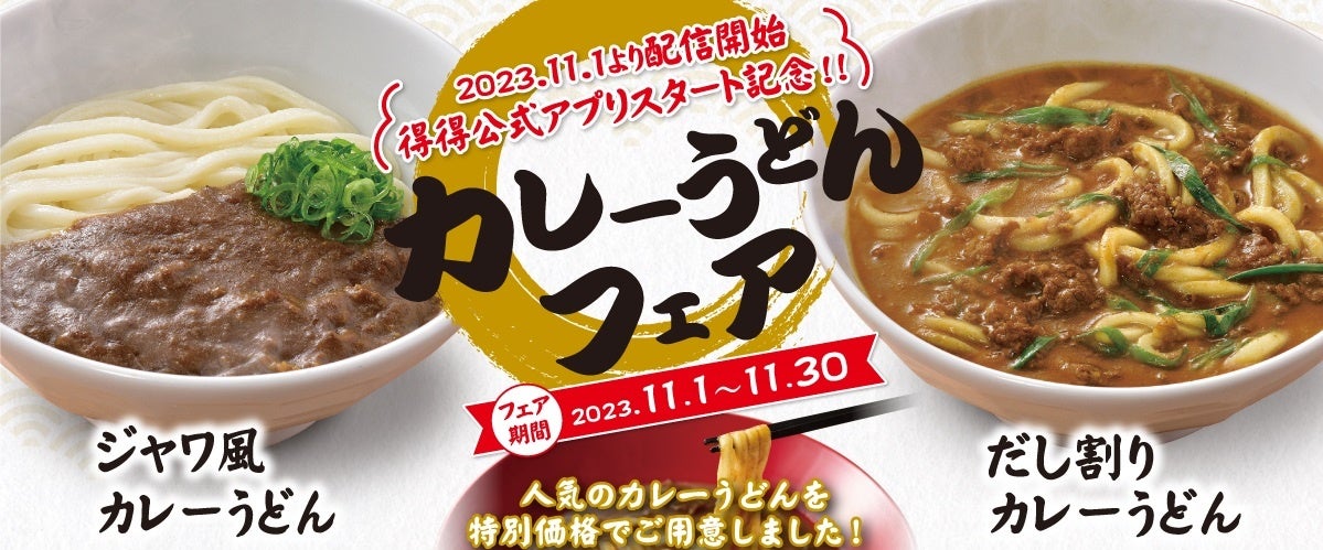 得得公式アプリ開始記念として、カレーうどんフェア、得得公式Xフォロー&リポストキャンペーン開催!