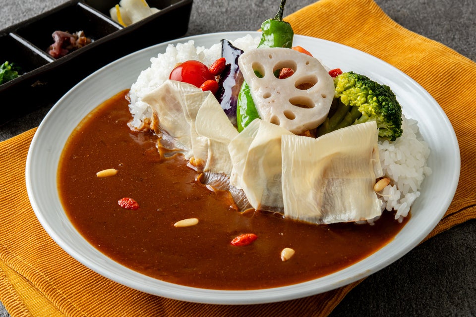 さらに、新登場の「サーロインステーキ丼」は、ジューシーで柔らかなサーロインを贅沢に使用。グリルで香ばしく焼き上げたステーキを熱々のご飯にのせた、満足感たっぷりの洋風丼です。「牛ステーキカレー」は、150gのステーキとスパイシーなカレーの絶妙なコンビネーションを楽しめる一品。人気の薬膳カレーには、湯葉をトッピングして、京都らしさをさらに引き立てています。