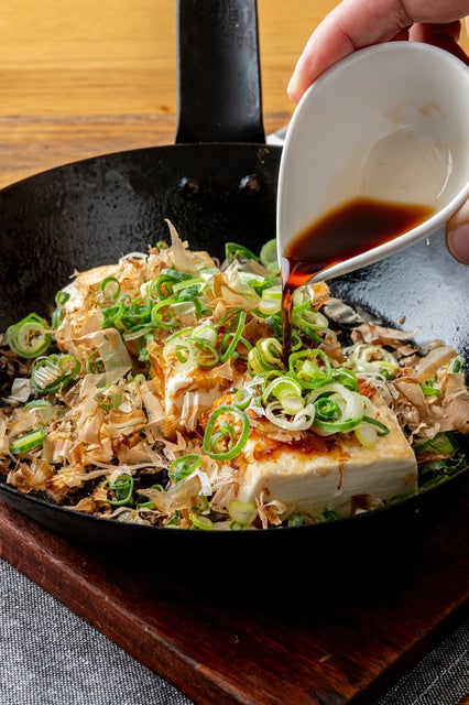 さらに、「紅はるかのチーズ焼き」は、お店でじっくり焼き上げた焼き芋に、蜂蜜とシュレッドチーズ、チェダーチーズの2種類のチーズ、ブラックペッパーを使用した、見た目にも食欲をそそる一品です。「京豆腐のステーキ」や、彩り豊かな「漬物寿司」など、京風創作メニューも新たに加わり、京都の旬を存分に味わえます。
