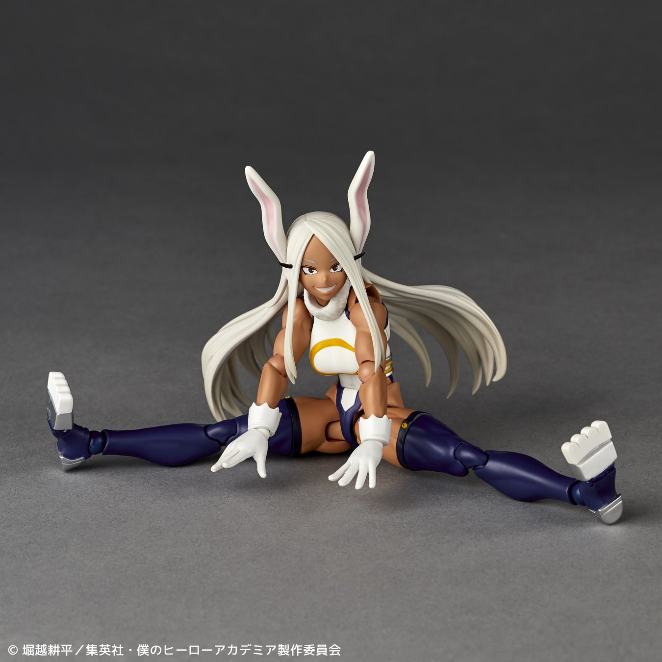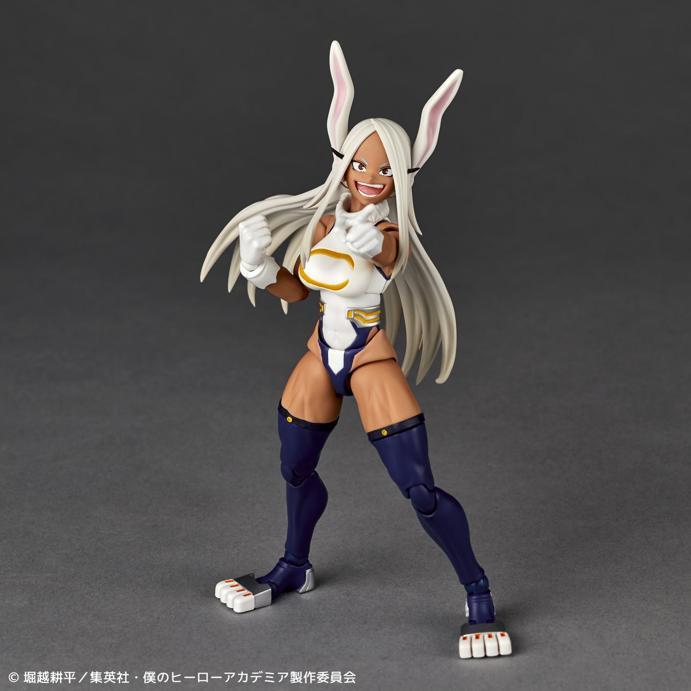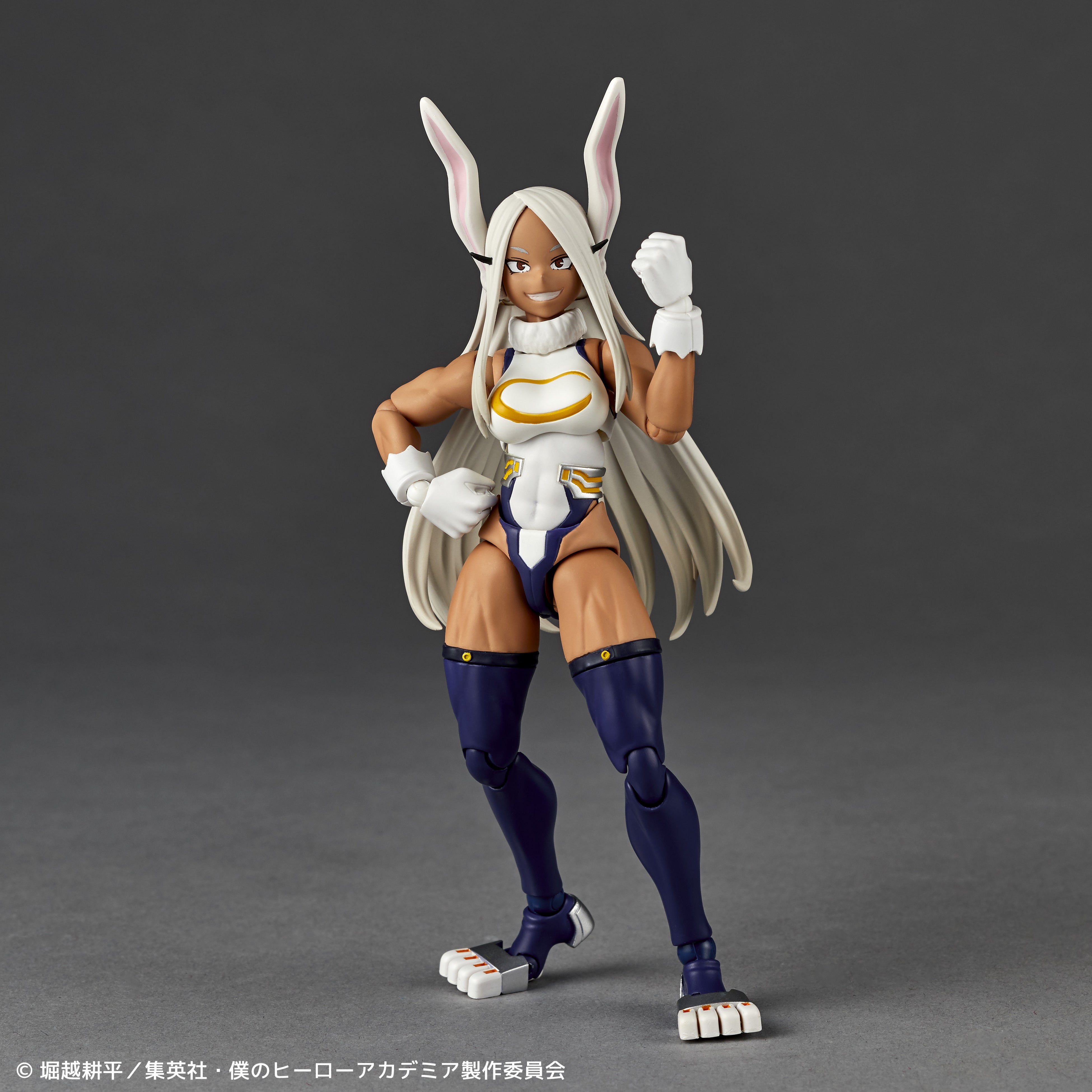 リボルテックでは、鍛え上げられた肉体に、“個性”により兎の特徴をもったプロポーションバランス、そして特に逞しく引き締まった脚部や肩の筋肉質なラインにこだわりを込めて造形。塗装も健康的な褐色の肌に、こちらも兎の特徴を受け継いだ白い髪と赤い目を劇中イメージ通りに仕上げました。