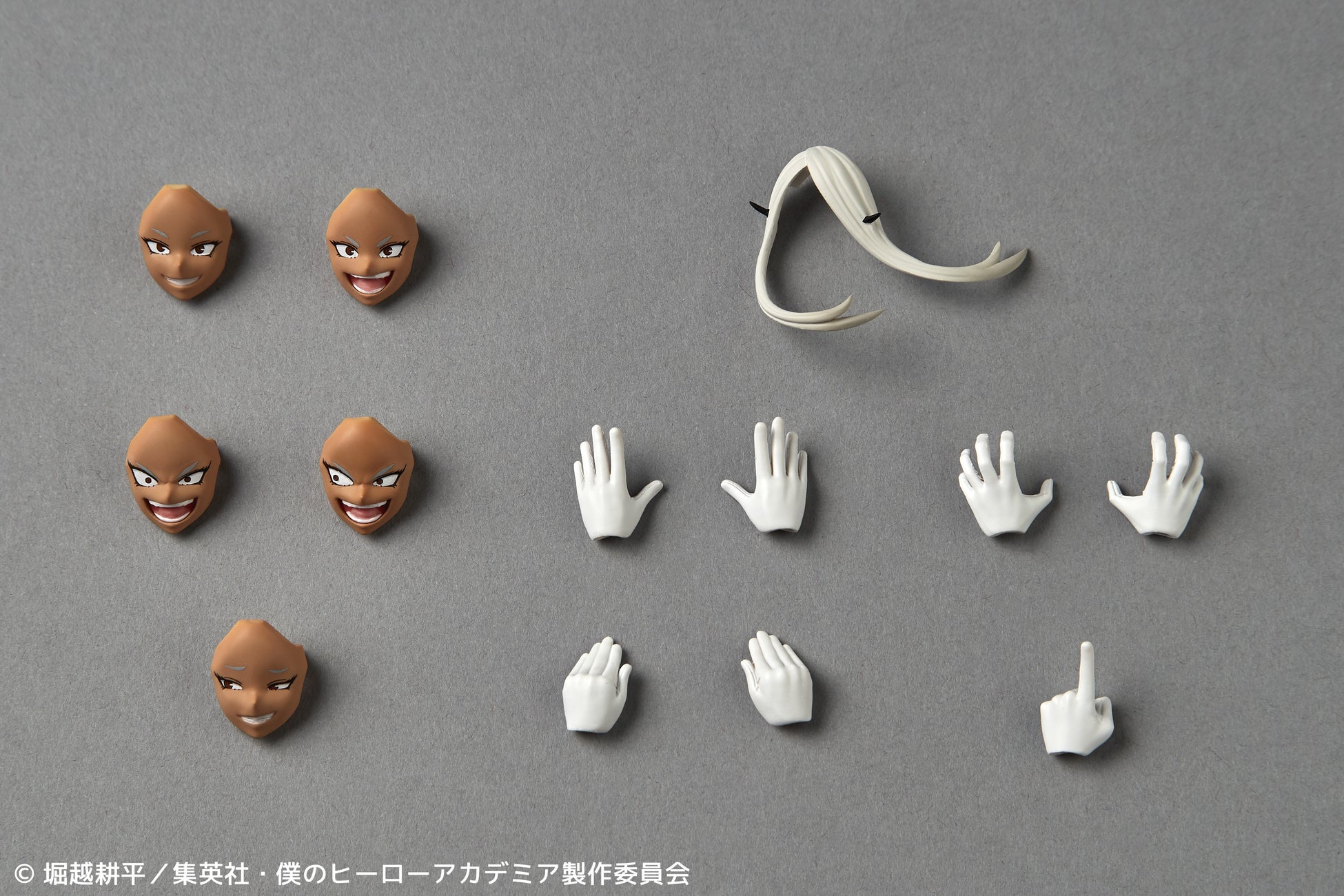 デフォルトの「微笑み顔」の他、快活な「笑顔」、ヒーローらしからぬ「たくらみ顔」や「にやり顔」など表情豊かな顔パーツが付属。凶暴な「怒り顔」はアクションに合わせて使い分けられる正面目線と右目線を用意しました。