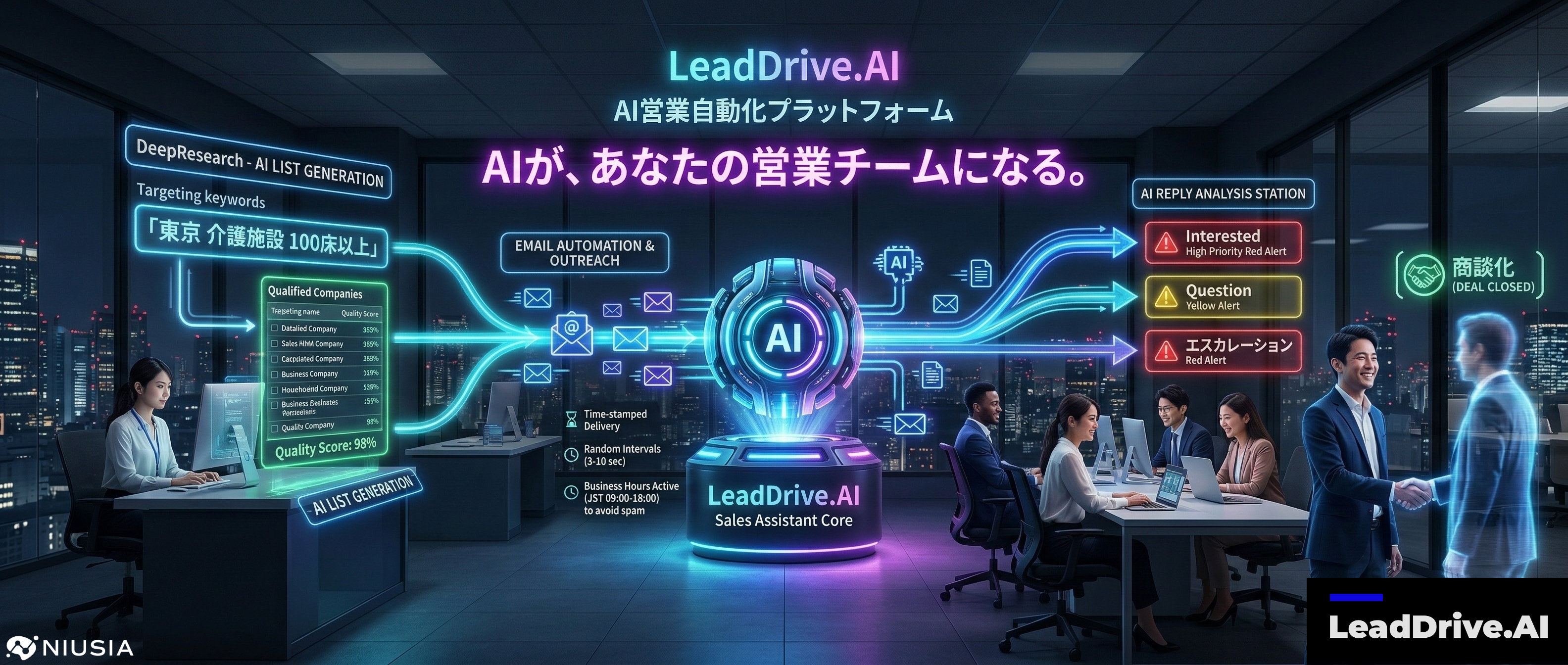 株式会社ニュウジア(本社:東京都中央区、代表取締役:柏口之宏)は、中小企業向けAI営業アシスタントSaaS「LeadDrive.AI」( https://leaddrive.ai )を本日正式リリースいたしました。