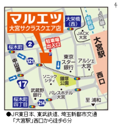 期待される地域です。周辺には大小のイベントホールや会議室などを有したソニックシティがあり、多くの人が集まる活気あるエリアとなっています。オープン後は、東口に構えるマルエツ 大宮店とともに、地域のお客さまの食生活に貢献できる店づくりに取り組んでまいります。