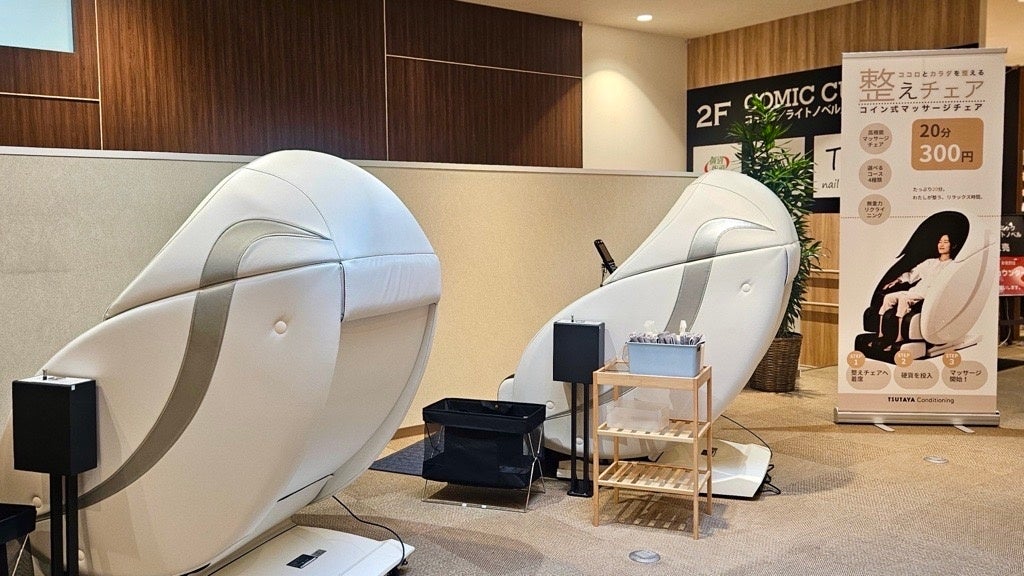 また、「TSUTAYA Conditioning」で好評をいただいているマッサージマシン「整えチェア」を3台備えています。3つのコースからその日の気分に合わせてくつろぎの時間をお過ごしいただけます。