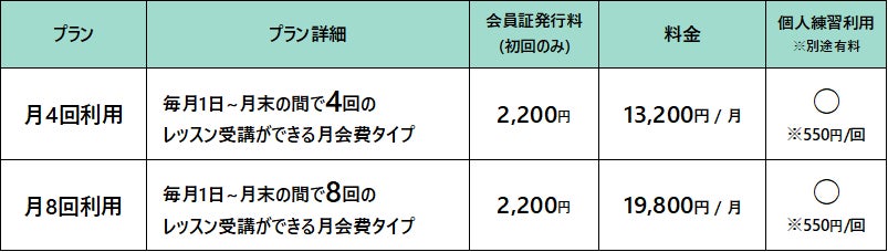 ※個人練習利用は、550円/30分。連続して90分まで利用可能。要予約。