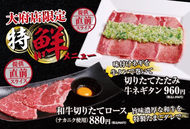 大府店限定メニューは『和牛切りたてロース』と『切りたてたたみ牛ネギタン』