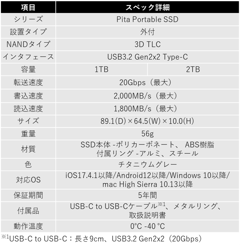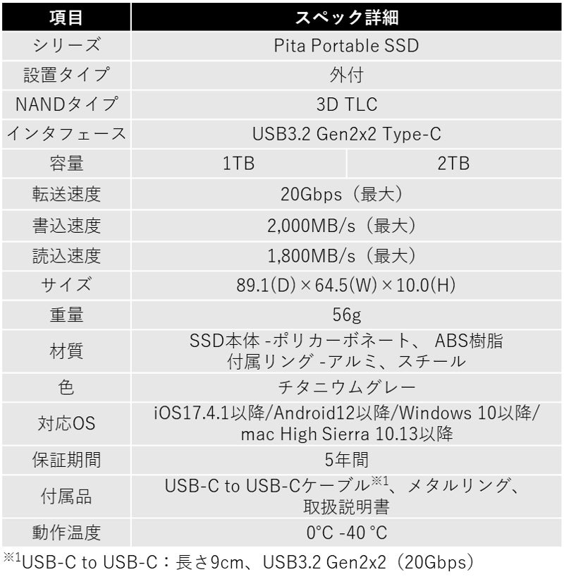 株式会社旭東エレクトロニクス(本社:東京都港区、代表取締役社長:孫旭利)は、この度2024年2月に開催のCP+(シーピープラス)2024で参考展示しておりました「SUNEAST Pita Portable SSD」を、2024年5月下旬より家電量販店及びオンラインショップにて順次販売開始いたします。