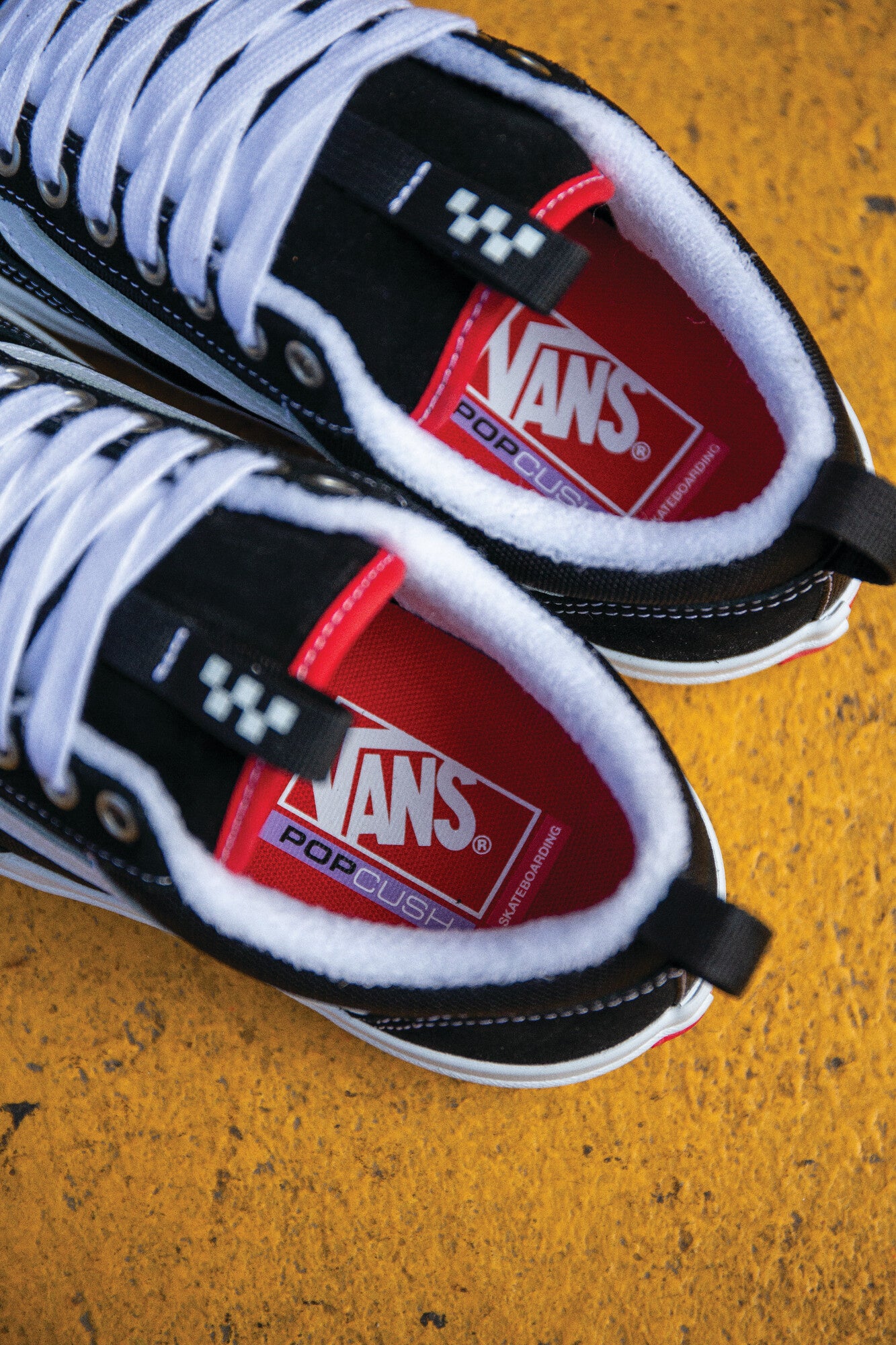 強力なグリップ力とボードコントロールを提供するVANS独自の「SickSick™」ラバー素材のワッフルアウトソールに加え、衝撃緩和素材を使用した「PopCush™」インソールは、最適なクッション性とエナジーリターンを実現します。