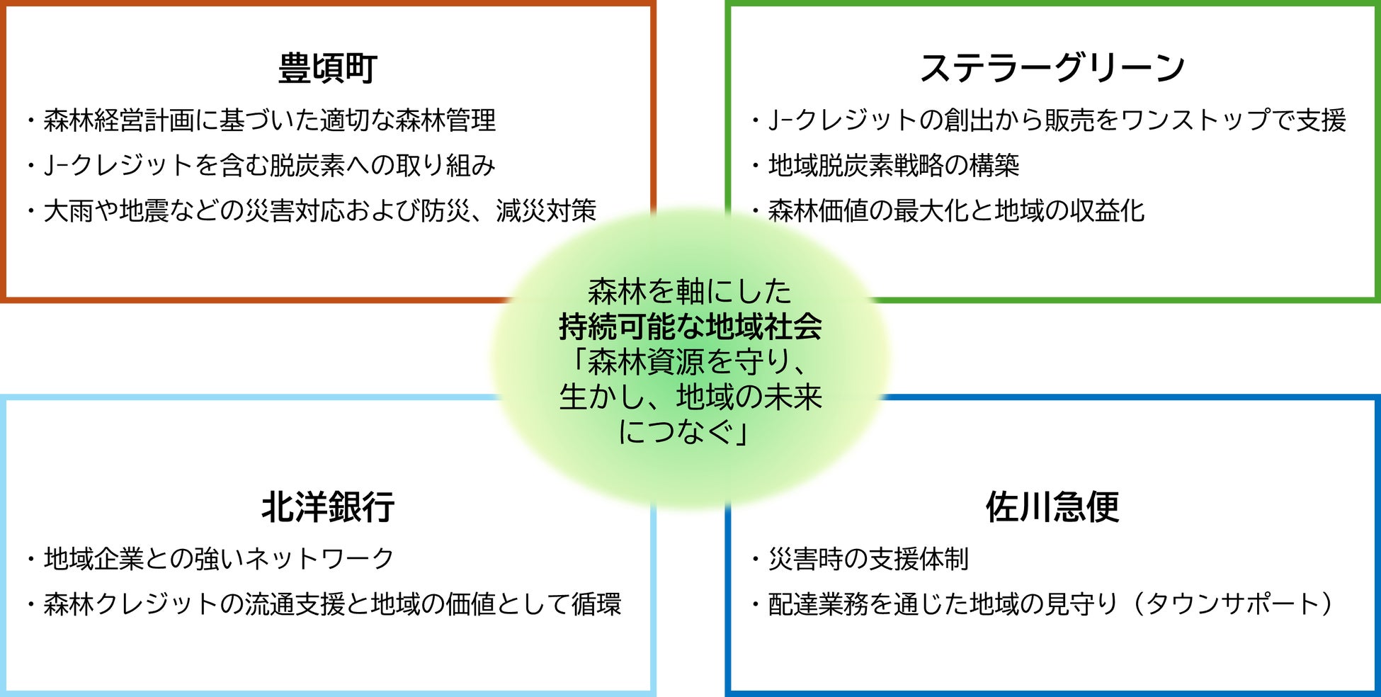 これらの取り組みは、森林カーボンクレジットの創出・販売や、町内外への情報発信などを4者が連携して推進していきます。