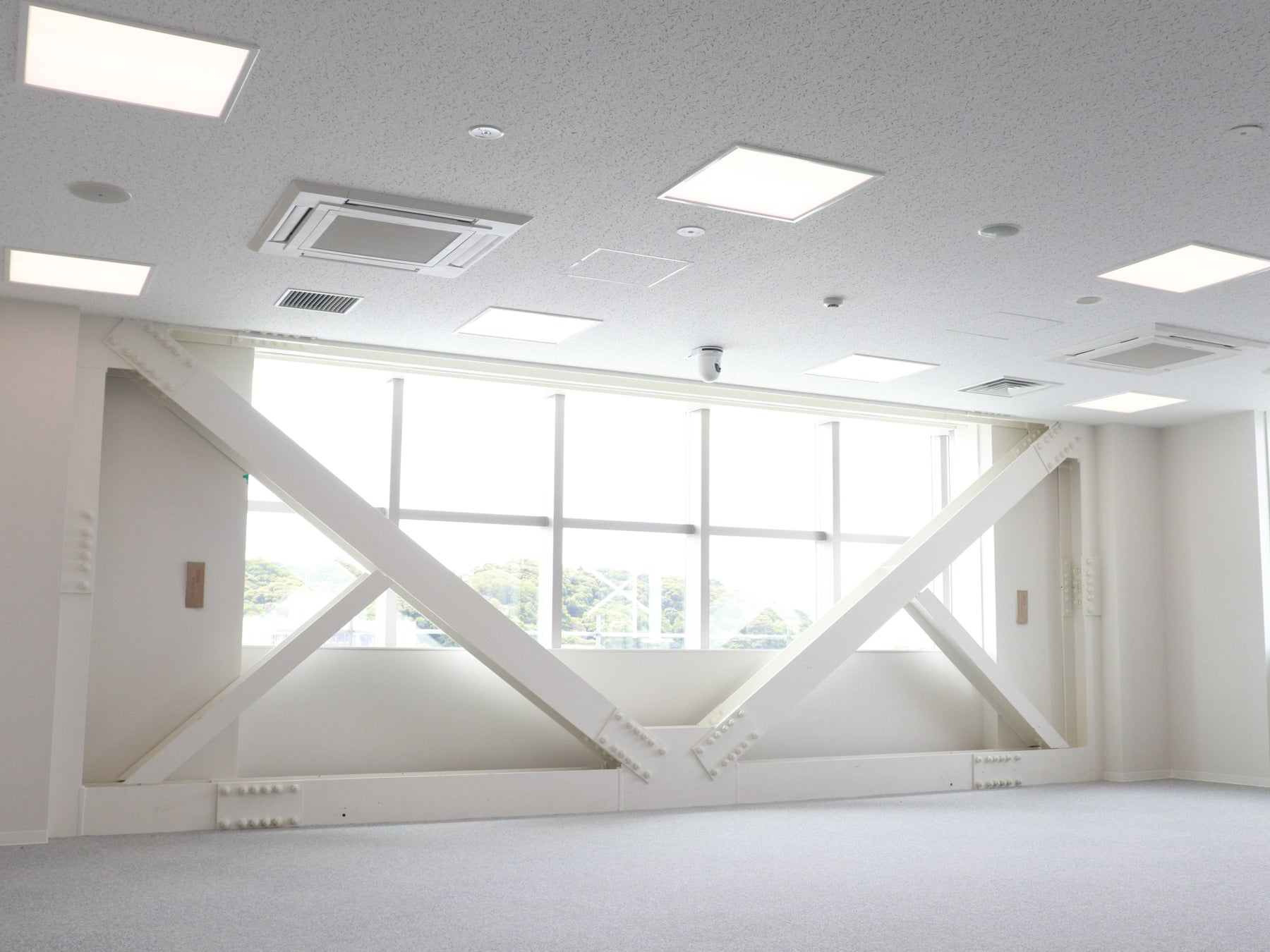 北庁舎は免震構造を採用し、防災拠点として高い耐震性能と地震直後からの事業継続が可能な建物としています。3階には、災害対策室を配置し、停電時においても非常用発電機からの電気供給により災害対策本部として活動できるようにしました。