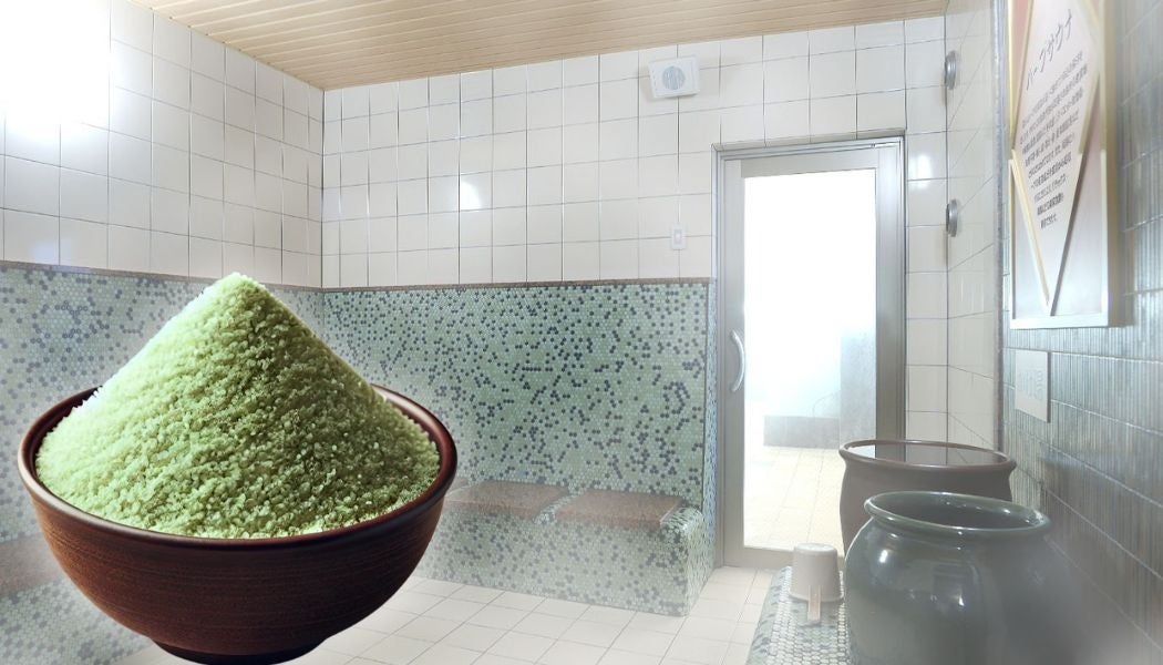 スチームサウナが香り高い西尾抹茶でグレードアップ! さらに特製西尾抹茶塩で肌がすべすべに。冬ならではの贅沢なリラックス空間をお楽しみください。