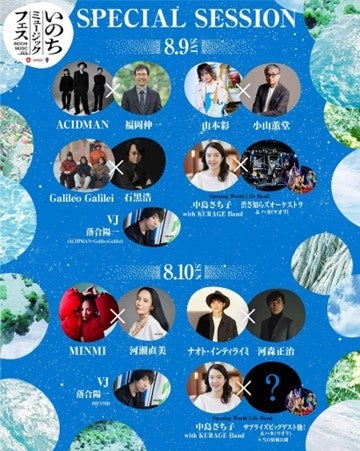 オープニングアクト「World Life Band」を「クラゲ館」プロデューサー中島さち子がプロデュース。自身が率いる多文化バンド「KURAGE Band」、マオリによるハカによるパフォーマンスで、「いのちを高める」2日に渡る協奏が繰り広げられます。各日、ビッグアーティストとの共演!中島と先住民とのトークセッションも行います。