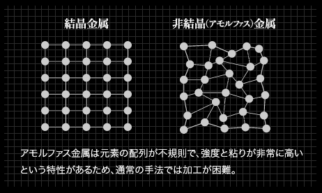 が、このアモルファス合金は使える薄さ、細さに切って加工するのが非常に困難な素材でもある。