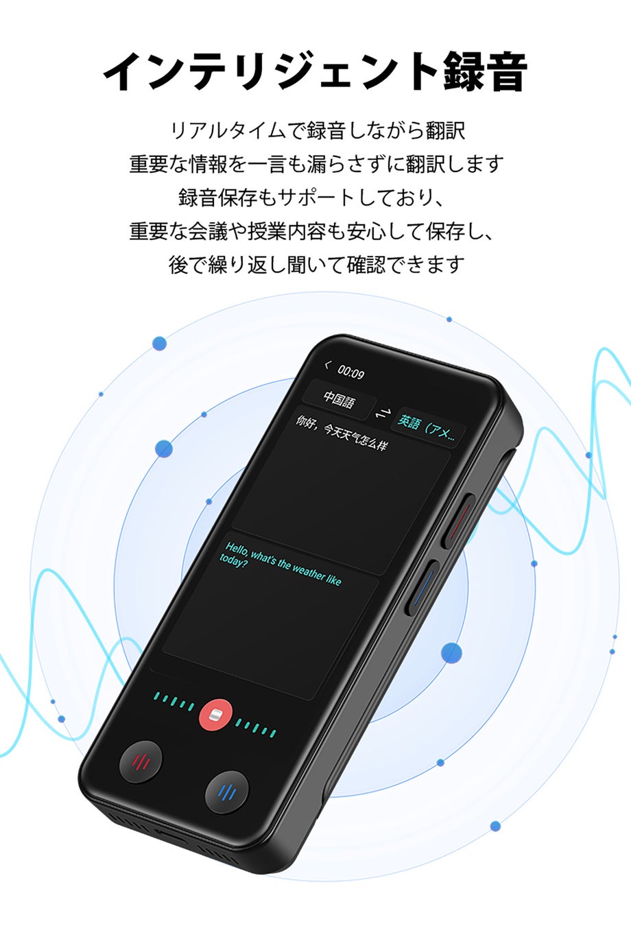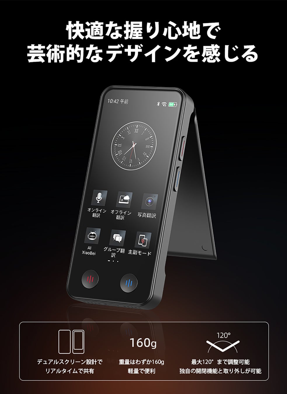 軽快な旅行を楽しみ、言語の障壁を感じさせません!私たちのスマートなデュアルスクリーン翻訳機は、パーソナルな言語チューターのように、どこでもいつでも3秒で言語の海を渡ります。