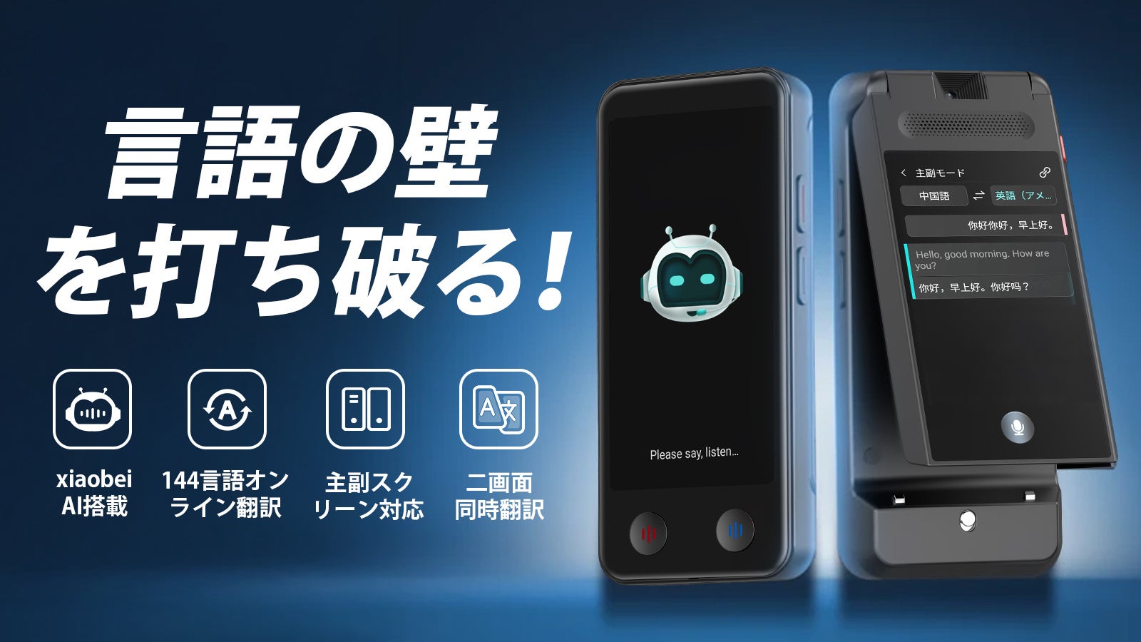 AI翻訳器革命!144言語対応、デュアルスクリーンでリアルタイム共有、議事録作成 |