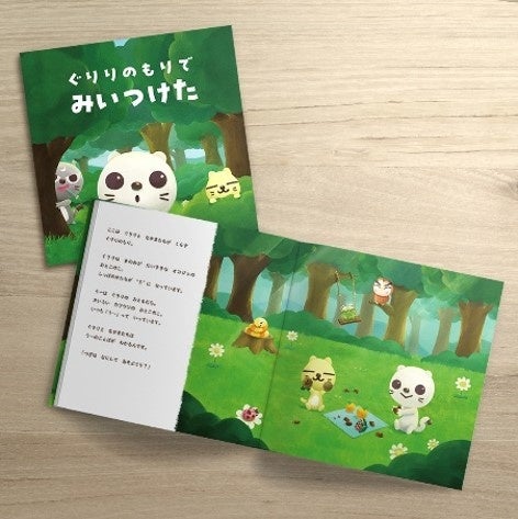 「こどもえがおだいさくせん!」スタート記念事業として、オリジナル絵本「ぐりりのもりでみいつけた」を新たに制作しました。子どもたちの観察力や創造力、感受性を育む一助になり、何度でも楽しんでもらえるような絵本になること願い、宮城県内各地の図書館、幼稚園、保育園などに約1,300部寄贈する予定です。ぐりりキャラバンでの読み聞かせも行っていきます。