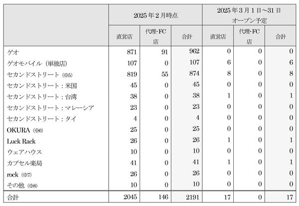 ※5)スーパーセカンドストリート、セカンドアウトドア、ジャンブルストア、Doki-Doki、Oki-Doki含む