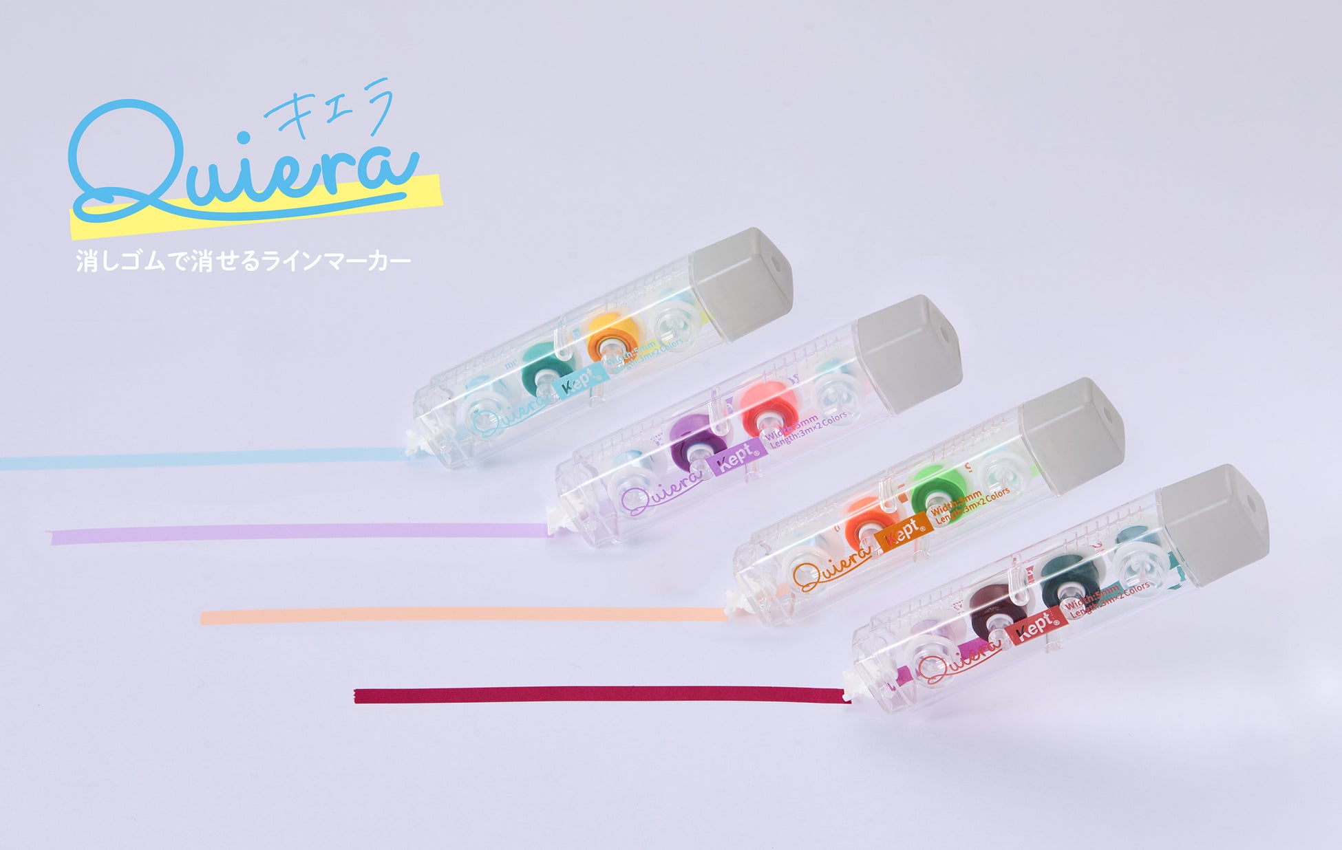 「キエラ」は、消しゴムで消せるラインマーカーです。