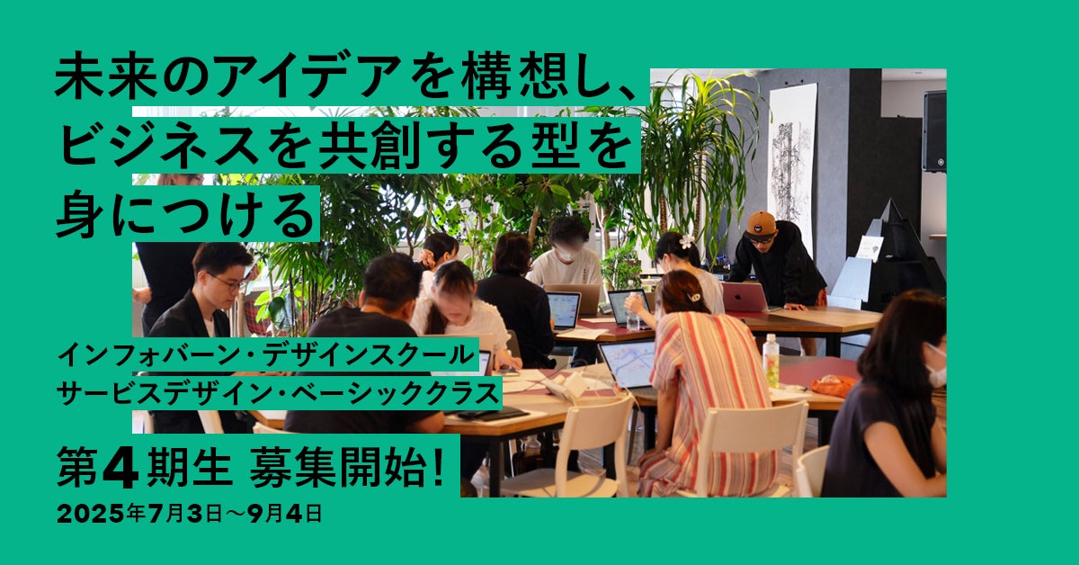 株式会社インフォバーン(本社:東京都渋谷区、:代表取締役社長:小林弘人、TNLメディアジーン関連企業、以下インフォバーン)は、7月より全6回の講義を通して「サービスデザイン」のプロセスを体験し、イノベーション人材を育成する「ベーシッククラス」の第4期生を募集いたします。