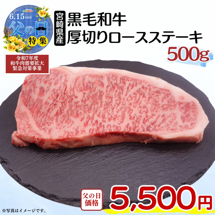 ★【畜産農家応援】宮崎県産和牛厚切りロースステーキ1枚500g【父の日】