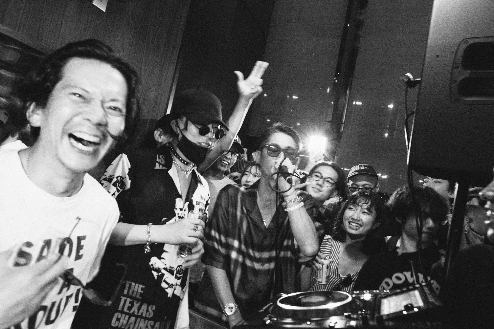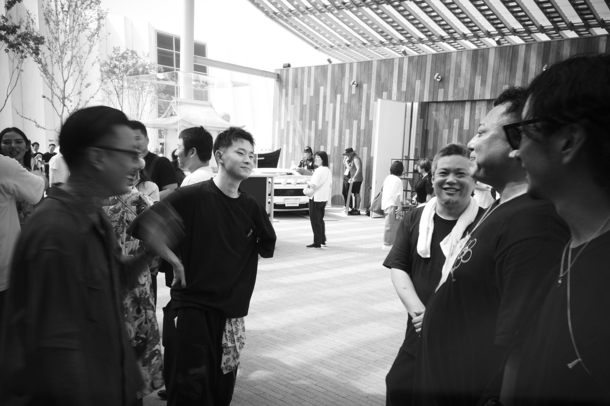 この個展に「フラッと遊びに来た友達のように」現れ、MUSASHIとその周りにいる人々を写真に収めていた“ポポちゃん”とは何者なのか。失礼ながら、その可愛い呼び名から想像するイメージとはかけ離れた、顔立ちもキャラも濃いめの男性フォトグラファーである。