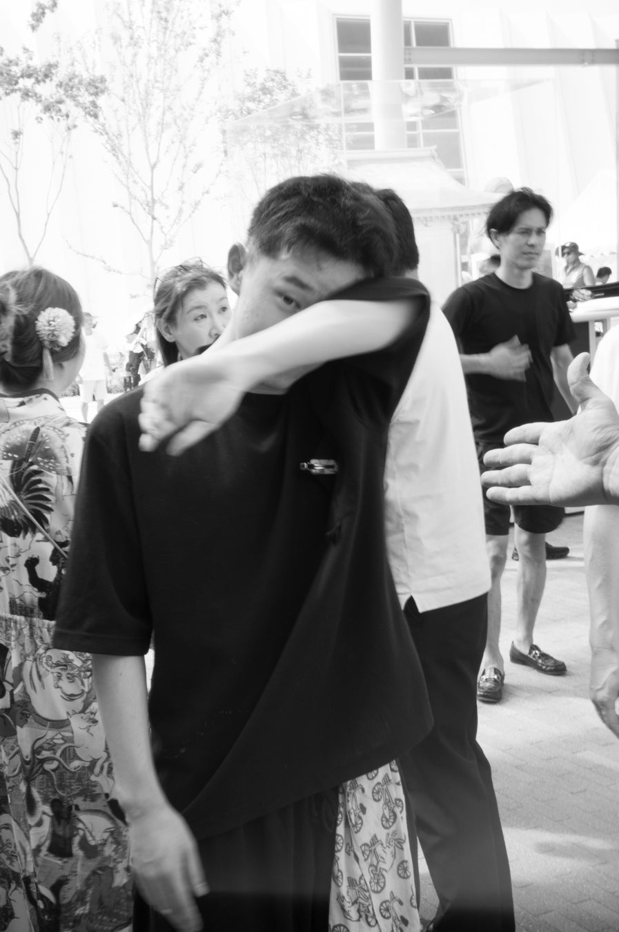 個展会場の入り口に立派な盆栽を出品してくれた『TRADMAN'S BONSAI』の小島鉄平さんとは2年前にあるパーティーで出会って以来仲良くなり、東京・丸の内に『TRADMAN'S BONSAI』のショップがオープンする際にも撮影を頼まれたりと、公私ともに付き合いが続いているそうだ。そのご縁でポポちゃんに声が掛かり『じゃあ一緒に行こう』と参加した。「実は万博の個展会場に着くまでMUSASHIくんに会ったこともないし、情報も聞いてなくて。何もわからずに行ったけど、何か楽しいことあるやろなって、そんな気持ちで向かいました」。