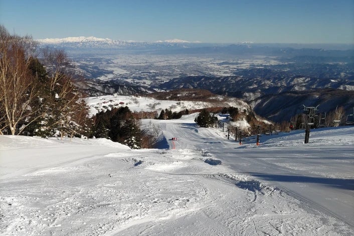 国道13号沿いにあるアクセス抜群のスキー場。駐車場の目の前がゲレンデになっており、中斜面を中心にコブ、幅広の緩斜面とバランスが良いため、初心者から上級者まで楽しめます。