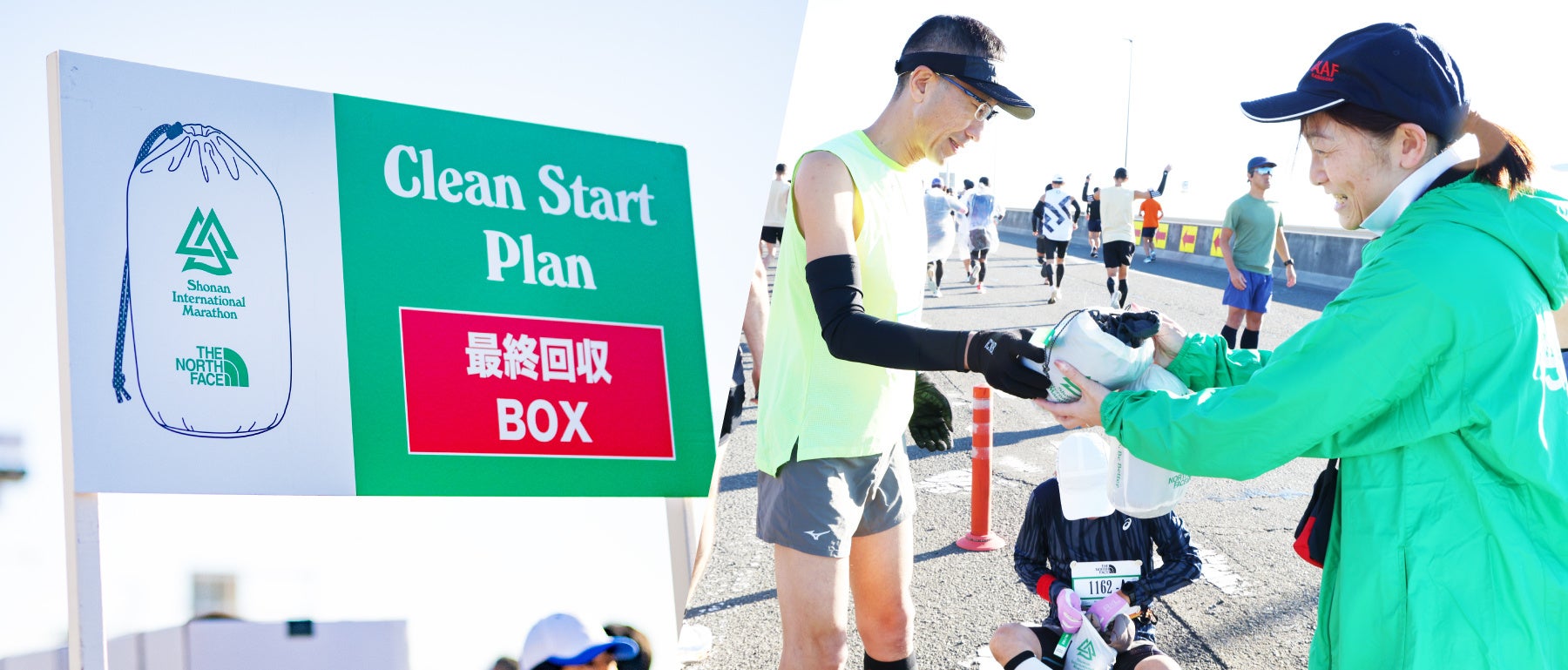 スタート前に着用していた防寒着等を回収・返却する「クリーンスタートプラン」や、会場内での分別回収・啓発活動など、ランナー・ボランティア・協賛企業とともに脱炭素に取り組む仕組みを構築しています。