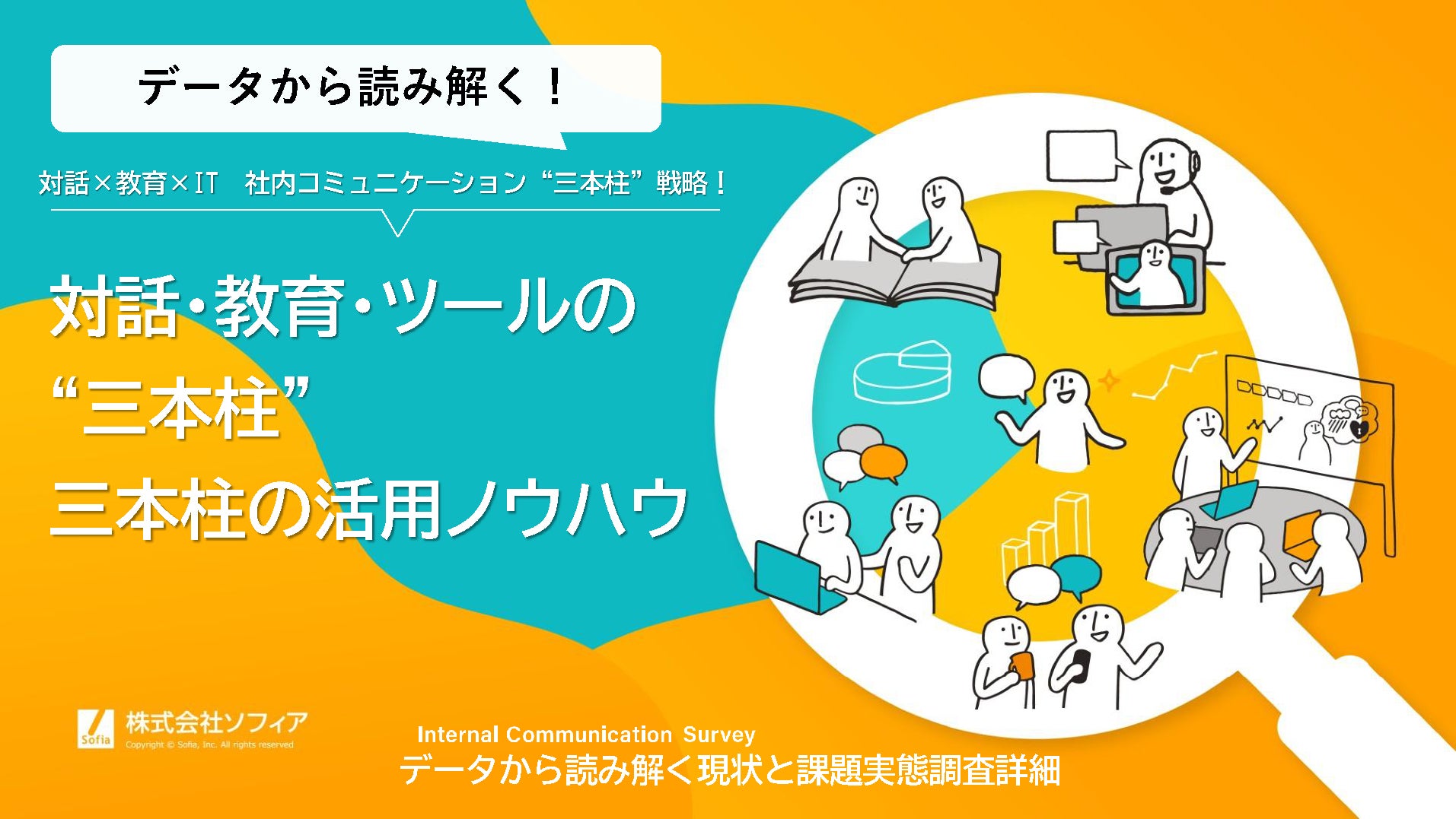 株式会社ソフィアは社内コミュニケーションに対する問題を解決するために、年に一度インターナルコミュニケーション実態調査を行っています。このサービスは、職場や組織におけるあらゆるコミュニケーションの課題に対し、サーベイの結果から読み解くヒントを提供し、経営者・従業員双方の悩みに応えます。
