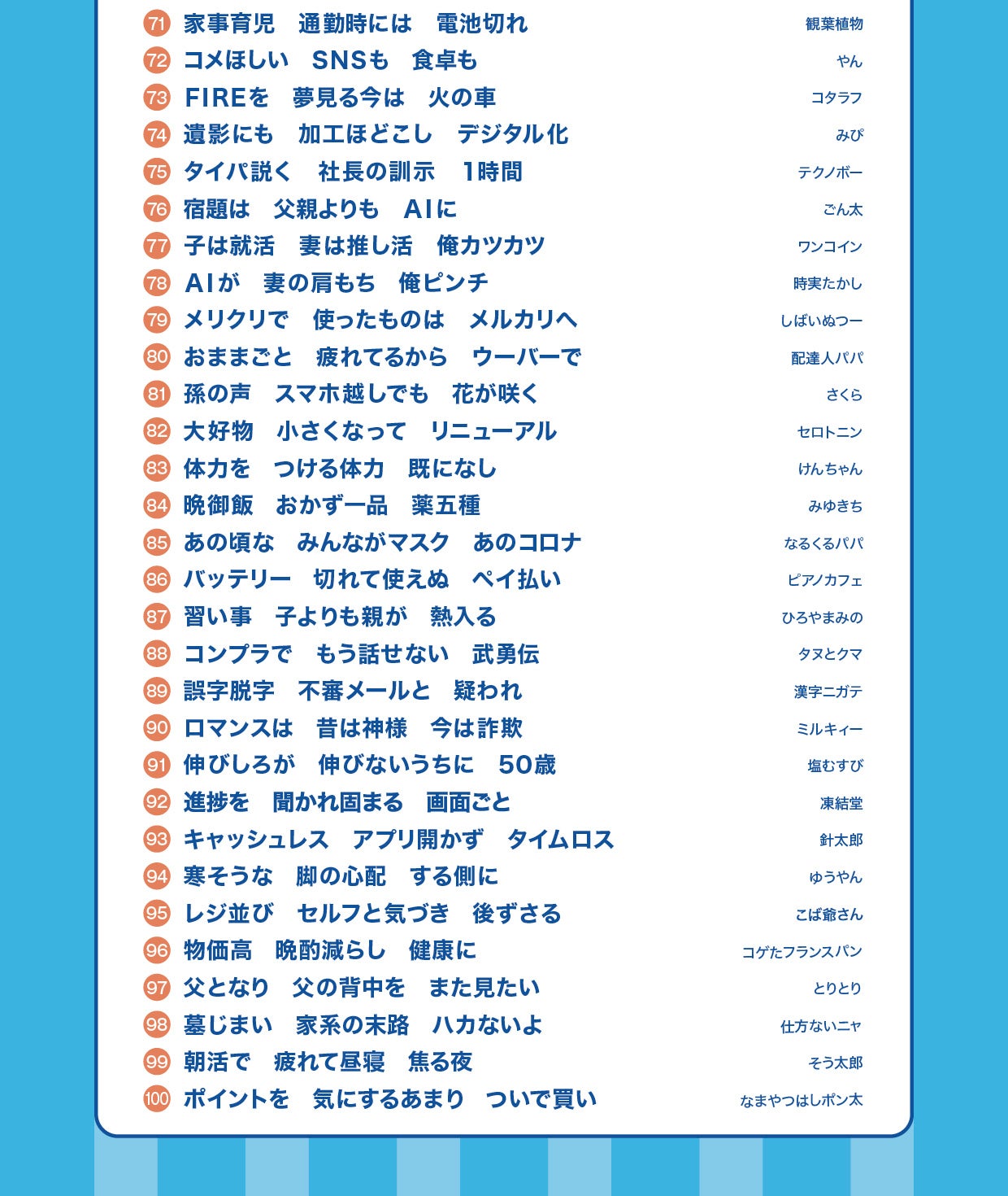 2025年『サラっと一句!わたしの川柳コンクール』優秀100句決定!