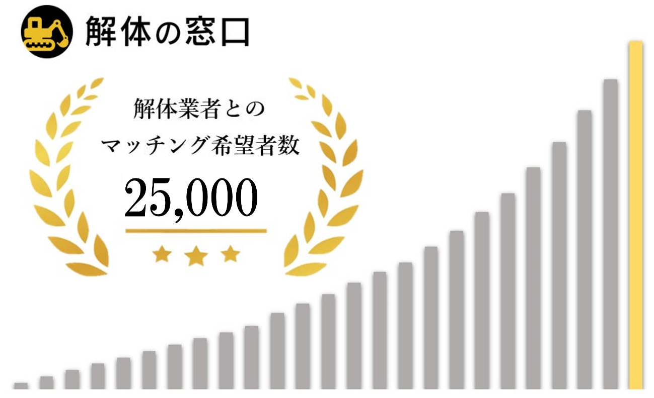 「解体の窓口」の解体業者とのマッチング希望者数が25,000人を突破