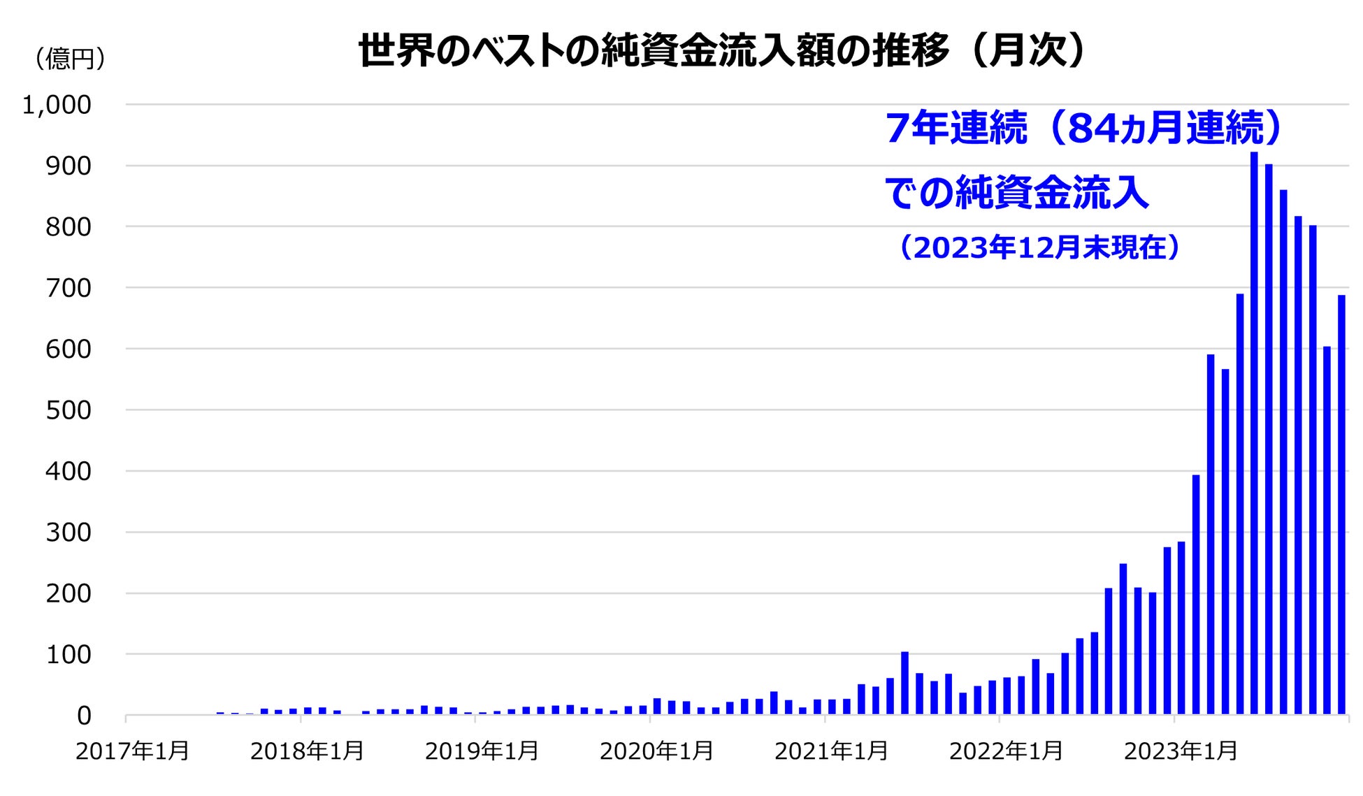 世界のベスト:7年(84ヵ月)連続での純資金流入を記録し、2023年間での純資金流入ランキング第1位を獲得