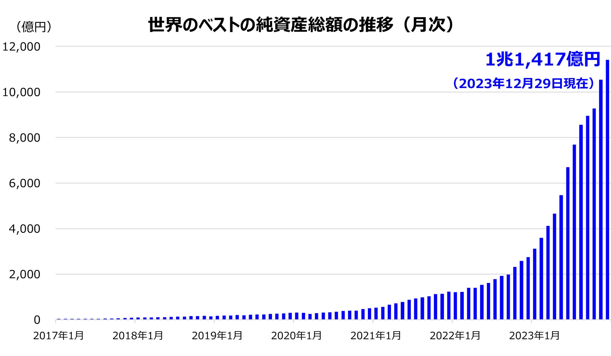 2023年12月31日時点において世界のベストは、6ファンド合計で1兆1,417億円の純資産総額*2となりました。