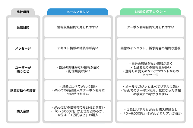 今回の調査で、実際にユーザーがどのように使っているのか、メールマガジンとLINEの利用実態が見えてきました。ここから推測されるメールマガジンとLINE、双方の特徴について振り返ります。