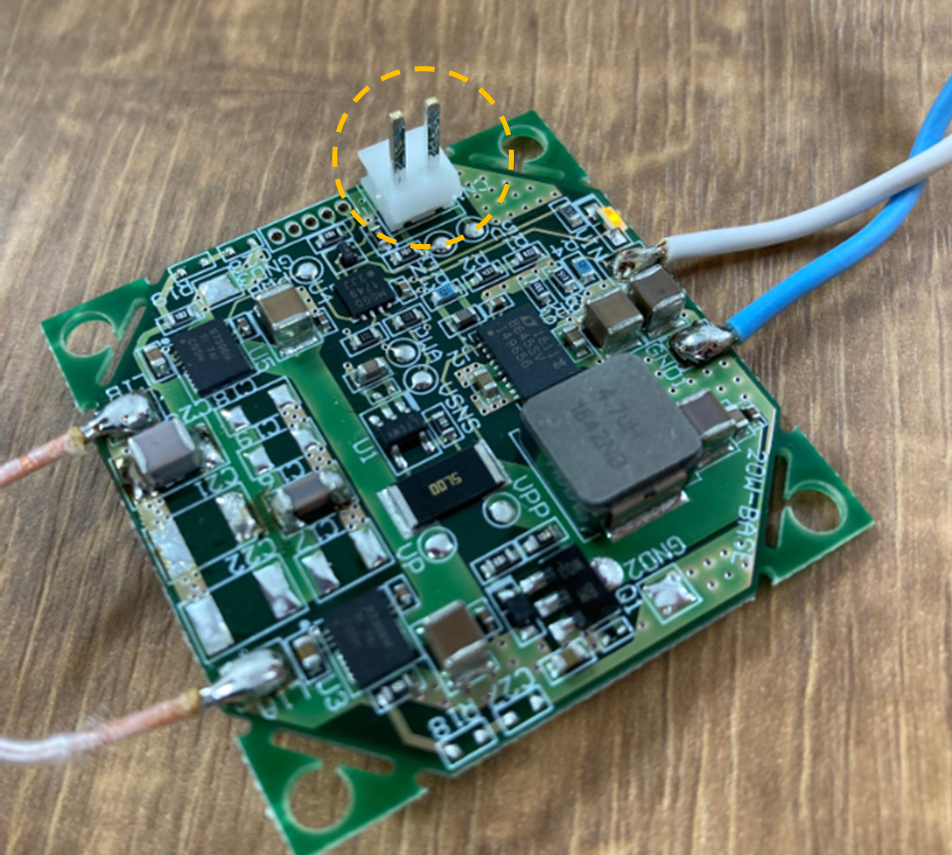 通常の20Wワイヤレス給電基板セットは以下の構成(送電基板、送電コイル、受電コイル、受電基板)となっていますが、コイル部や出力電圧へカスタマイズ対応も可能な基板設計になっています。その為、qi規格では対応が難しいコイル形状でも適応が可能で、より自由度の高いワイヤレス給電が実現出来ます。