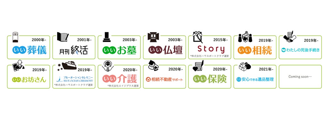 当社は人々が悔いのない人生を送るお手伝いをするため、終活・供養専門企業として「いい介護」、「いい葬儀」、「いいお墓」、「いい相続」などのサービスを運営し、お客様センターやポータルサイトを通じた相談受付や情報提供を行うことで、終活ワンストップサービスの実現を目指しています。