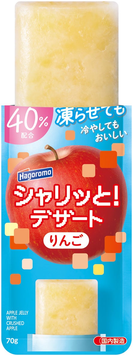 さわやかな甘みの「りんご」と、上品な甘さの「白桃」の食感を十分に楽しめるように、細かく刻んだ果肉を40%配合しました。食べ応えもあり、デザートとして満足感も得られます。ジュレは、凍らせた時と冷やした時、どちらもちょうど良い食感になるように仕上げています。