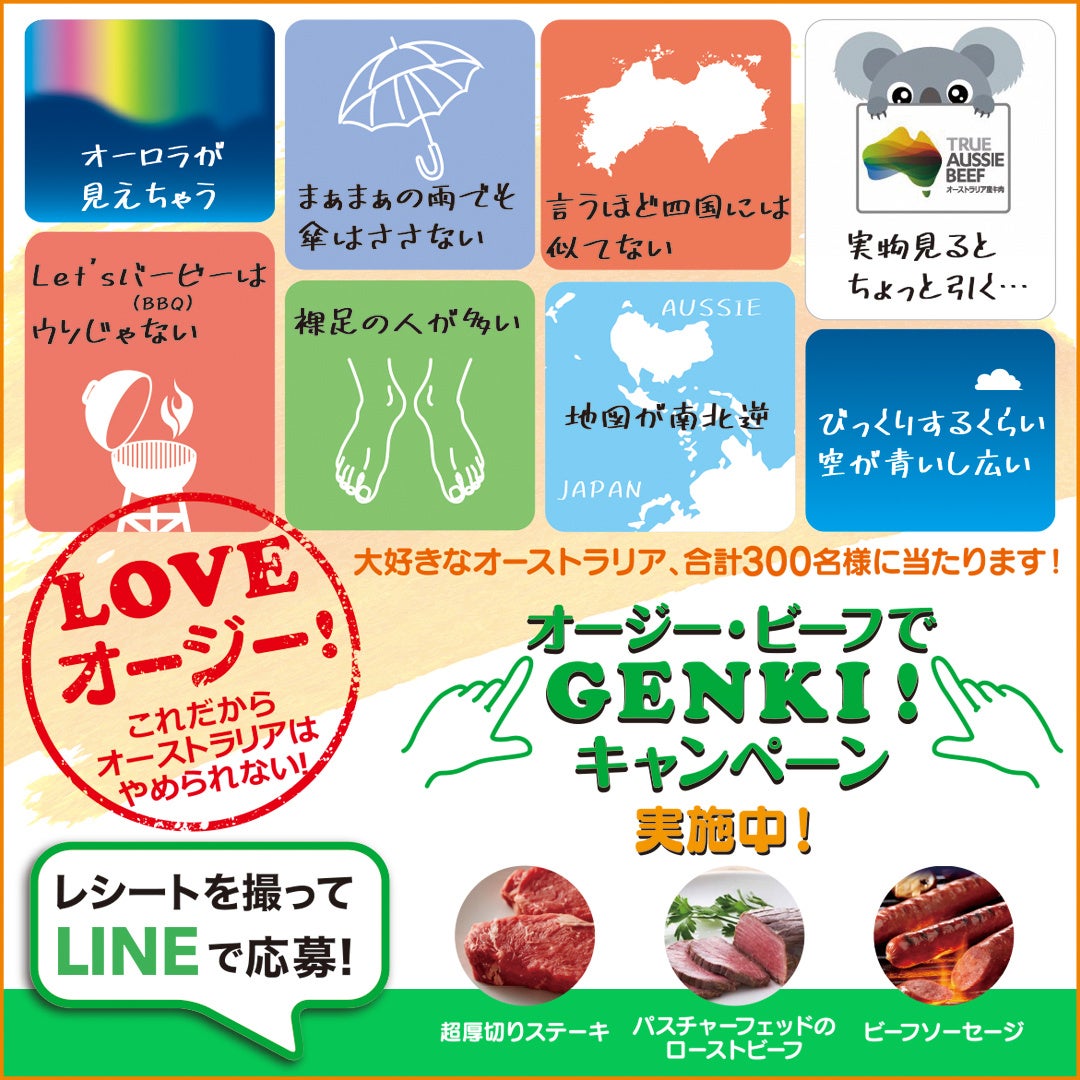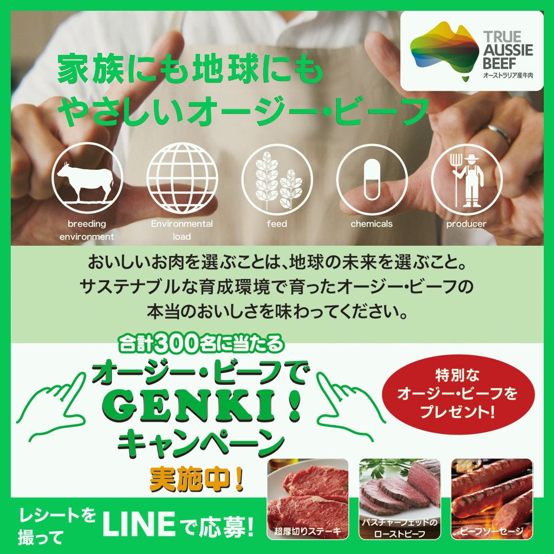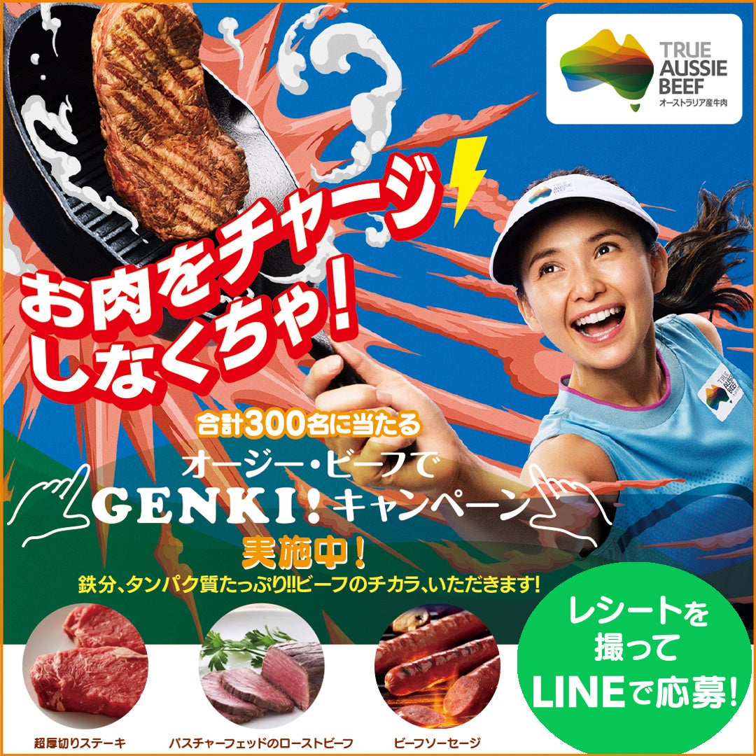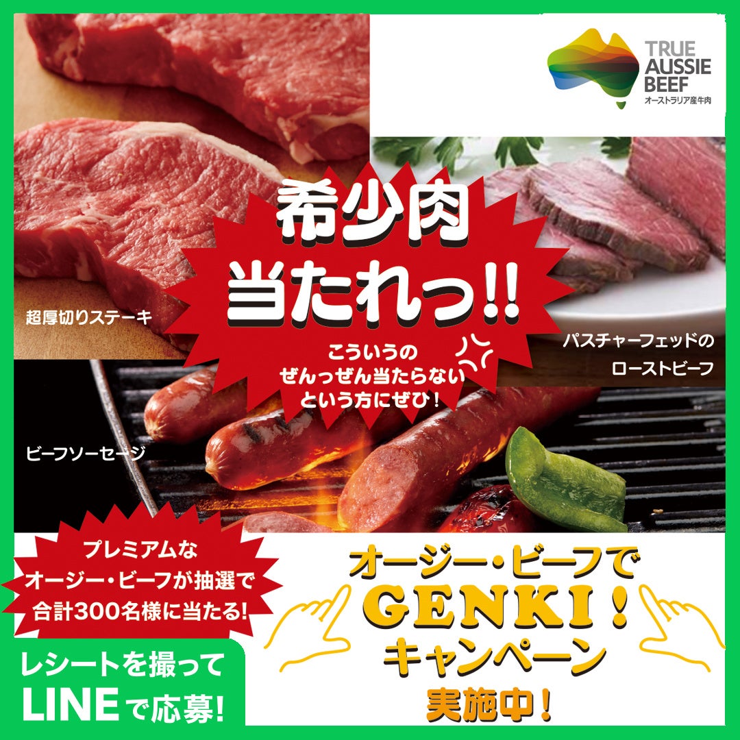 12/17(金)から『オージー・ビーフでGENKI!キャンペーン』をスタート!「オージー・ビーフでGENKI!LINEで応募プレゼントキャンペーン(https://genki.aussiebeef.jp)」「29秒でレシピがわかる情報厚めな29動画公開」「ファンのためのおもしろ圧強めな動画公開」を展開し、暑い南半球オーストラリアから、熱!厚!?圧?な冬の楽しみ方をお届けします。