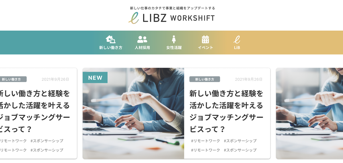 2014年4月に日本初のキャリア女性向け転職支援サービスとしてリリースした「LiBzCAREER」は、新しい働き方で自分らしい活躍を叶えたい人のためのジョブマッチングサービス「LIBZ」にリニューアルいたしました。