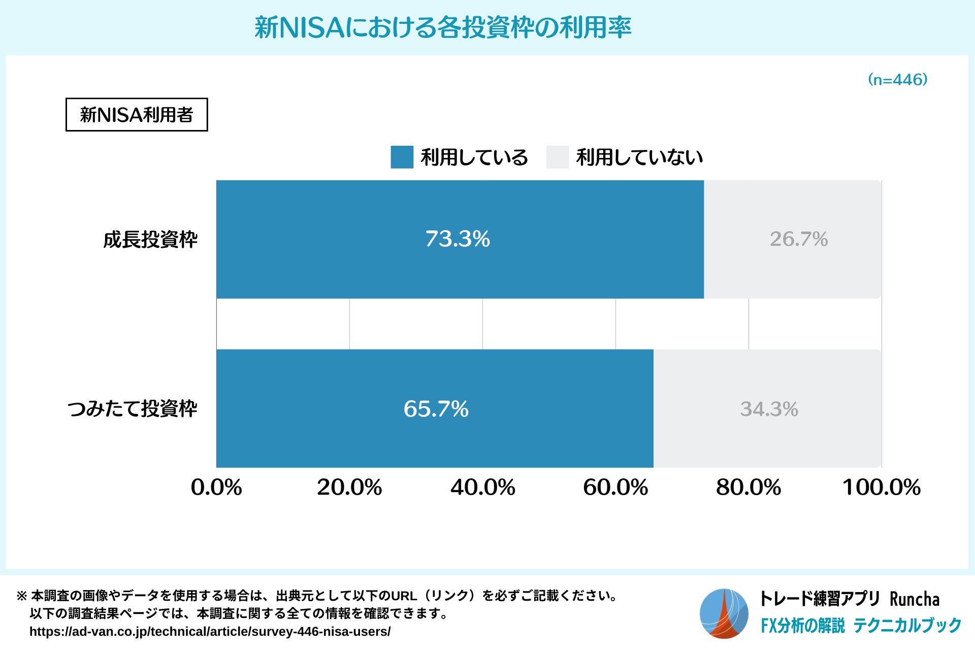 2.新NISAの利用率は成長投資枠が73.3%、つみたて投資枠が65.7%