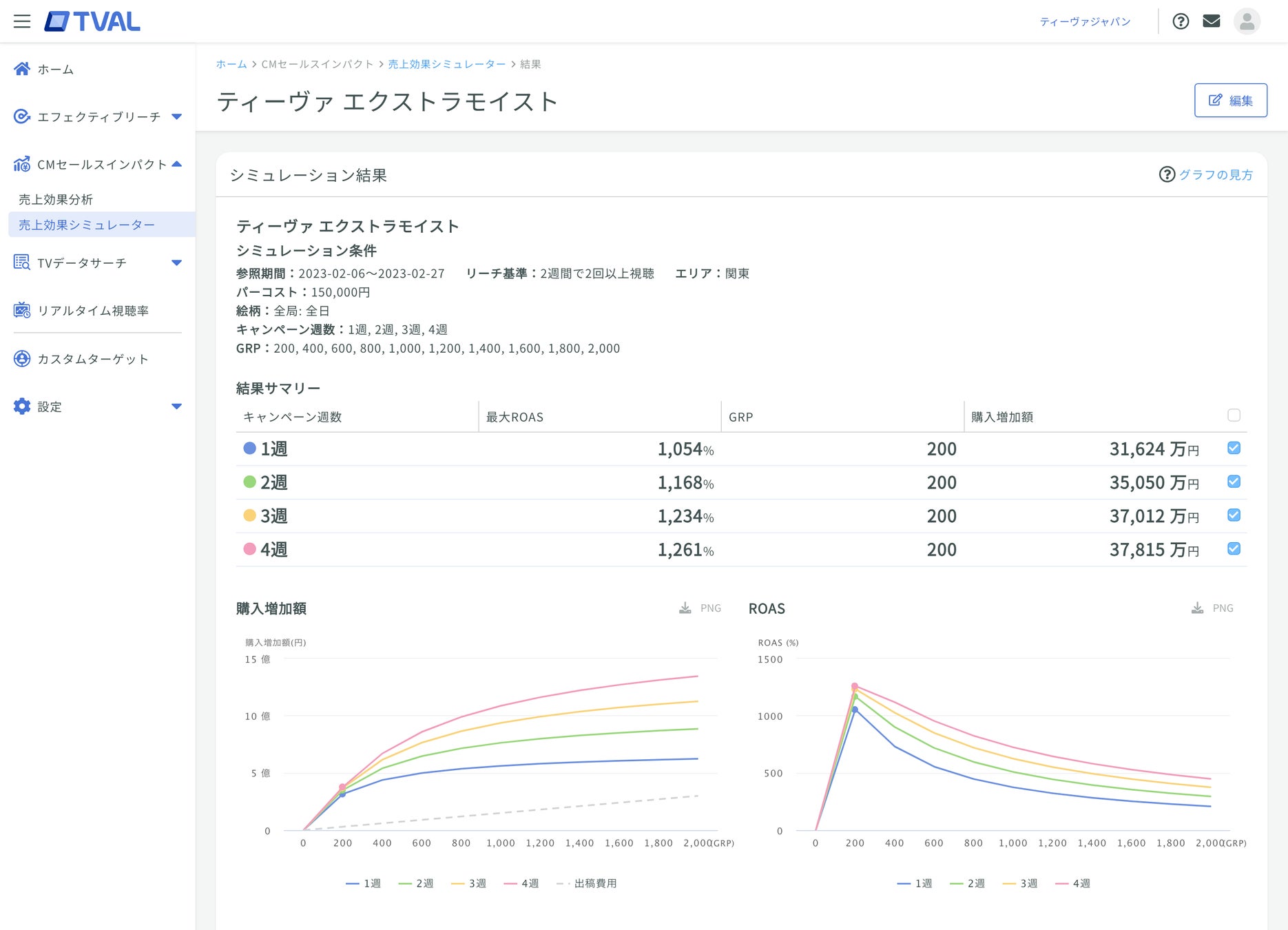 TVAL 売上効果シミュレーター画面イメージ(結果画面)
