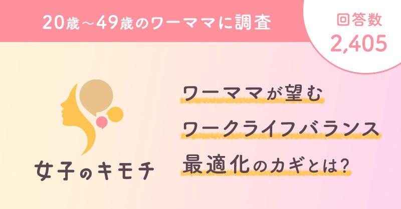 フェムケア事業を展開する株式会社オノフ(所在地:東京都渋谷区、代表取締役:安宅正晴)は、女性視点マーケティングに特化した調査研究をベースとしたサービスの提供や、クライアントワークとしてマーケティング・リサーチ、セールスプロモーション企画・顧客ロイヤリティ向上のためのCRM設計を提供しております。今回は、調査研究として中学生以下の子供を持ち、現在働いている、全国の20~40代の女性を対象とした「WLB(ワークライフバランス)と子育て支援制度の利用実態」の結果をレポートします。